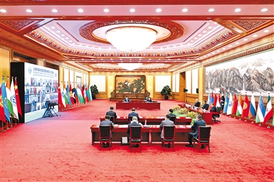 7月4日下午,国家主席习近平在北京以视频方式出席上海合作组织成员国元首理事会第二十三次会议并发表题为《牢记初心使命 坚持团结协作 实现更大发展》的重要讲话。